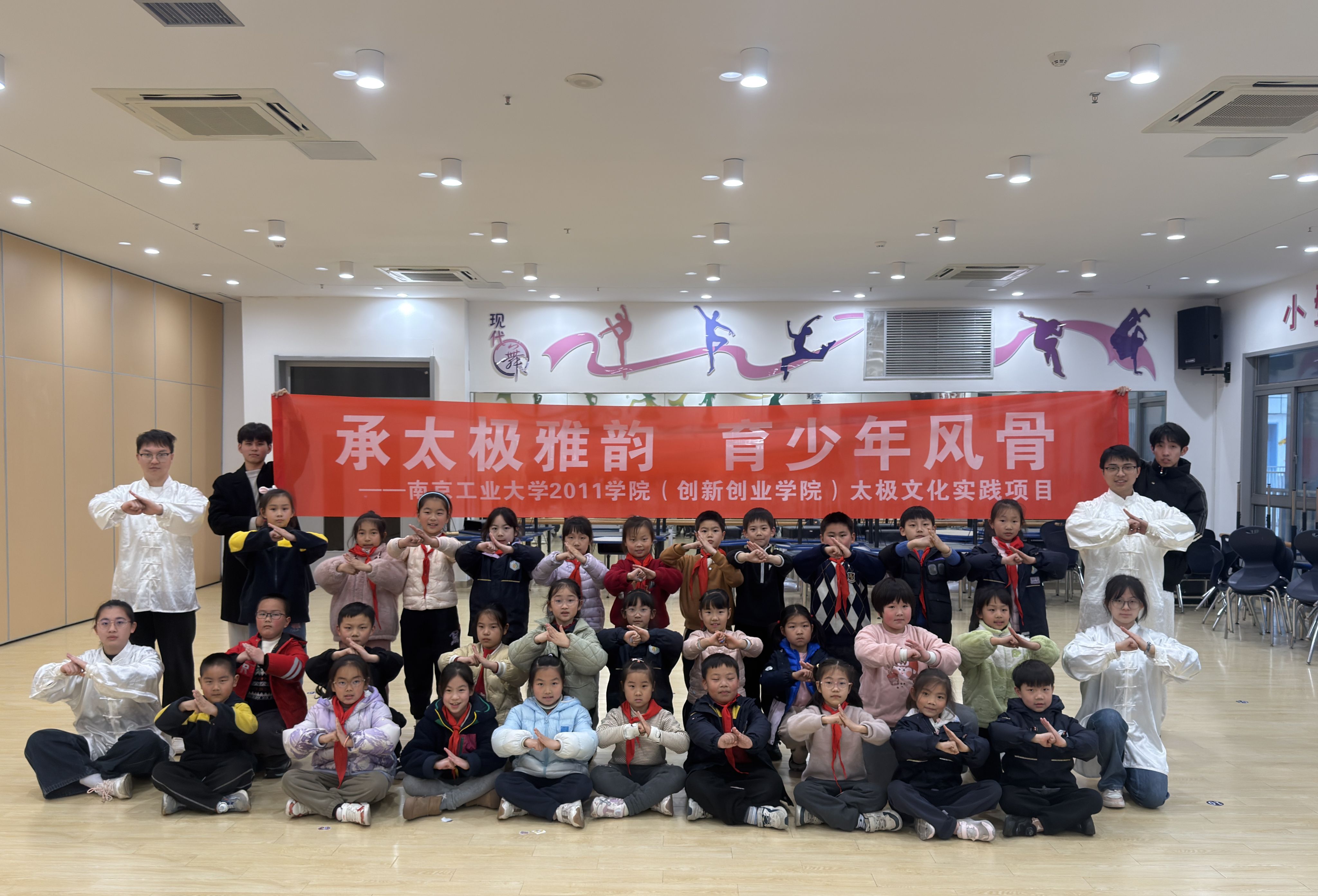 3月18日下午,2011学院(创新创业学院)走进南工大实小,开启为期10周的“承太极雅韵 育少年风骨”太极文化实践育人项目,并开展首次教学活动。学院团委负责人、学院武术队、校国术俱乐部的志愿者和实小的40余名师生参加活动。